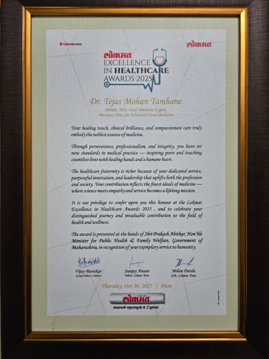 Feeling deeply humbled and grateful to be recognized as the Best Fetal Medicine Expert in the city. Received this award at the hands of Mr. Prakash Abitkar, Hon’ble Health Minister of Maharashtra state and in presence of Dr. Purvez Grant sir, MD Ruby Hall Clinic, Pune.